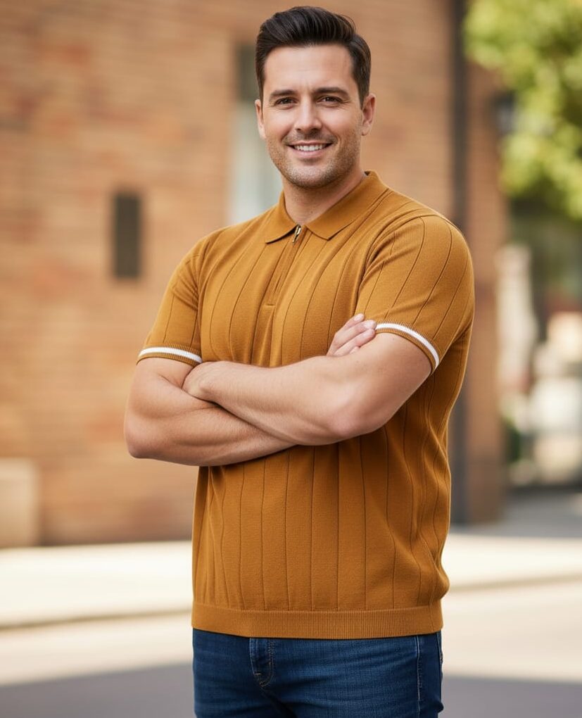 Clothkart, Men’s Slim Fit Polo T-Shirt | Ribbed Knit Texture & Breathable Fabric | 100% Cotton Casual Wear | Modern Smart Casual Top| Inner Stripe Design